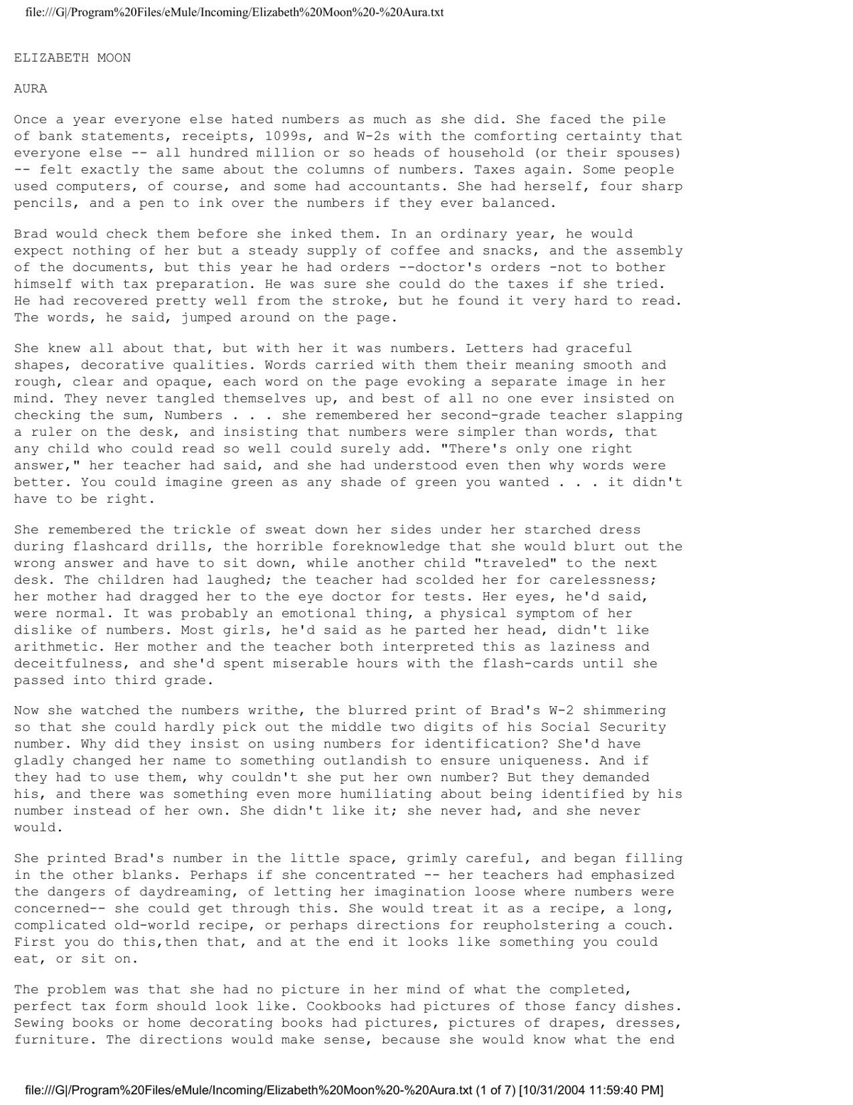 Index of /~buccaneer/stacks/books~/UT8PA/Elizabeth Moon/Aura (5379)/